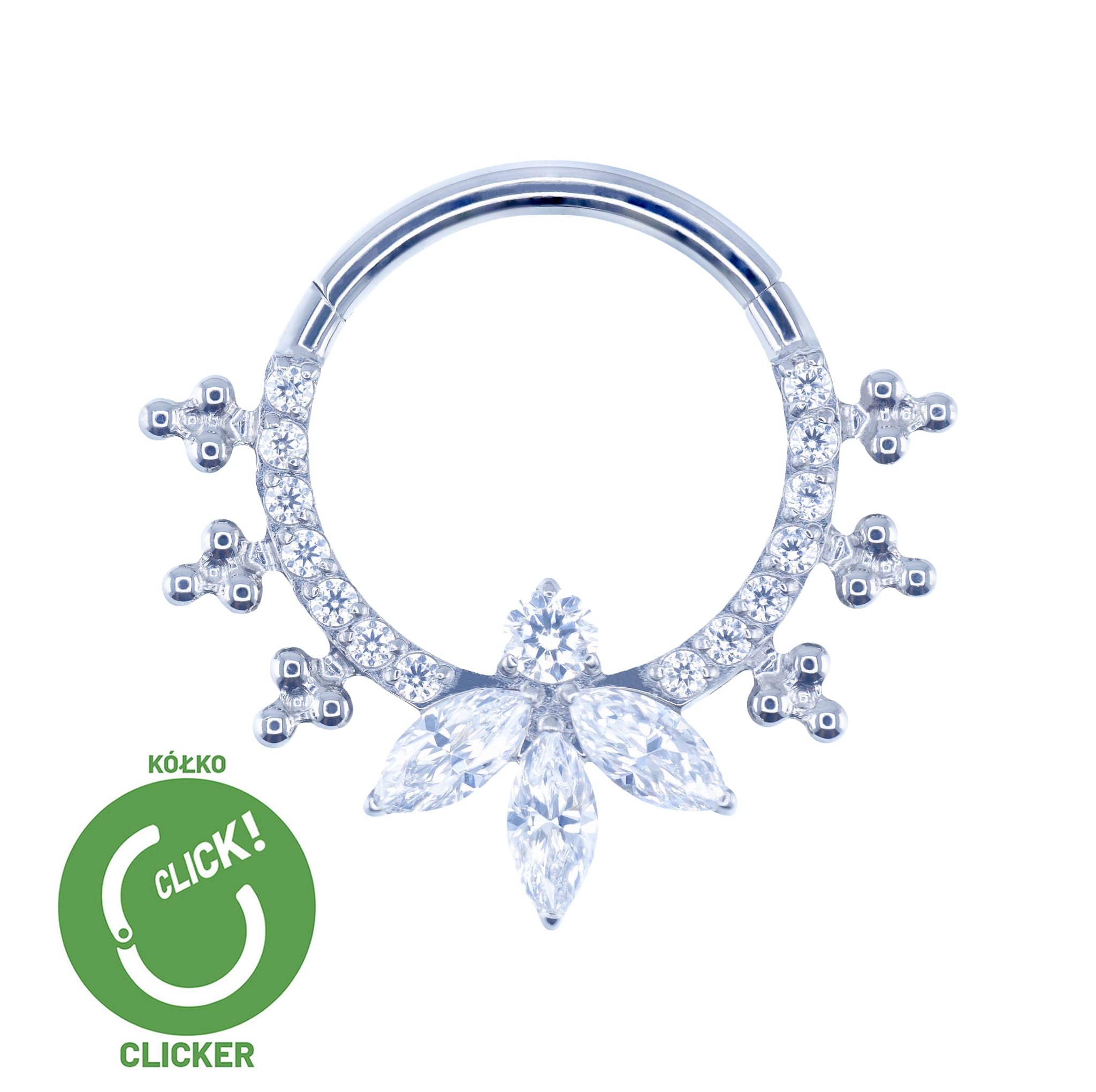 Clicker kółko tytanowe z 3 markizami i cyrkoniami