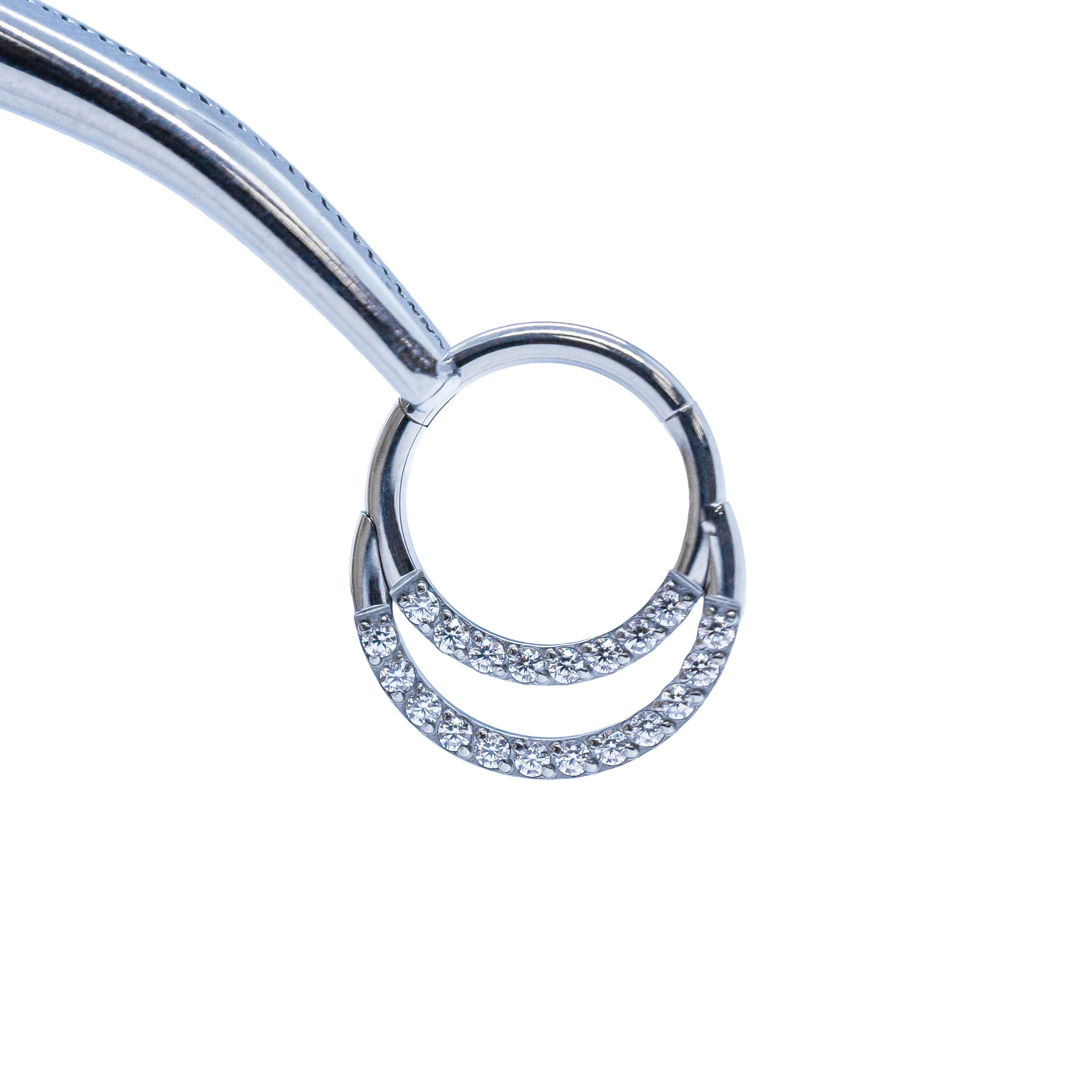Clicker podwójne kółko z kryształami biżuteria tytanowa
