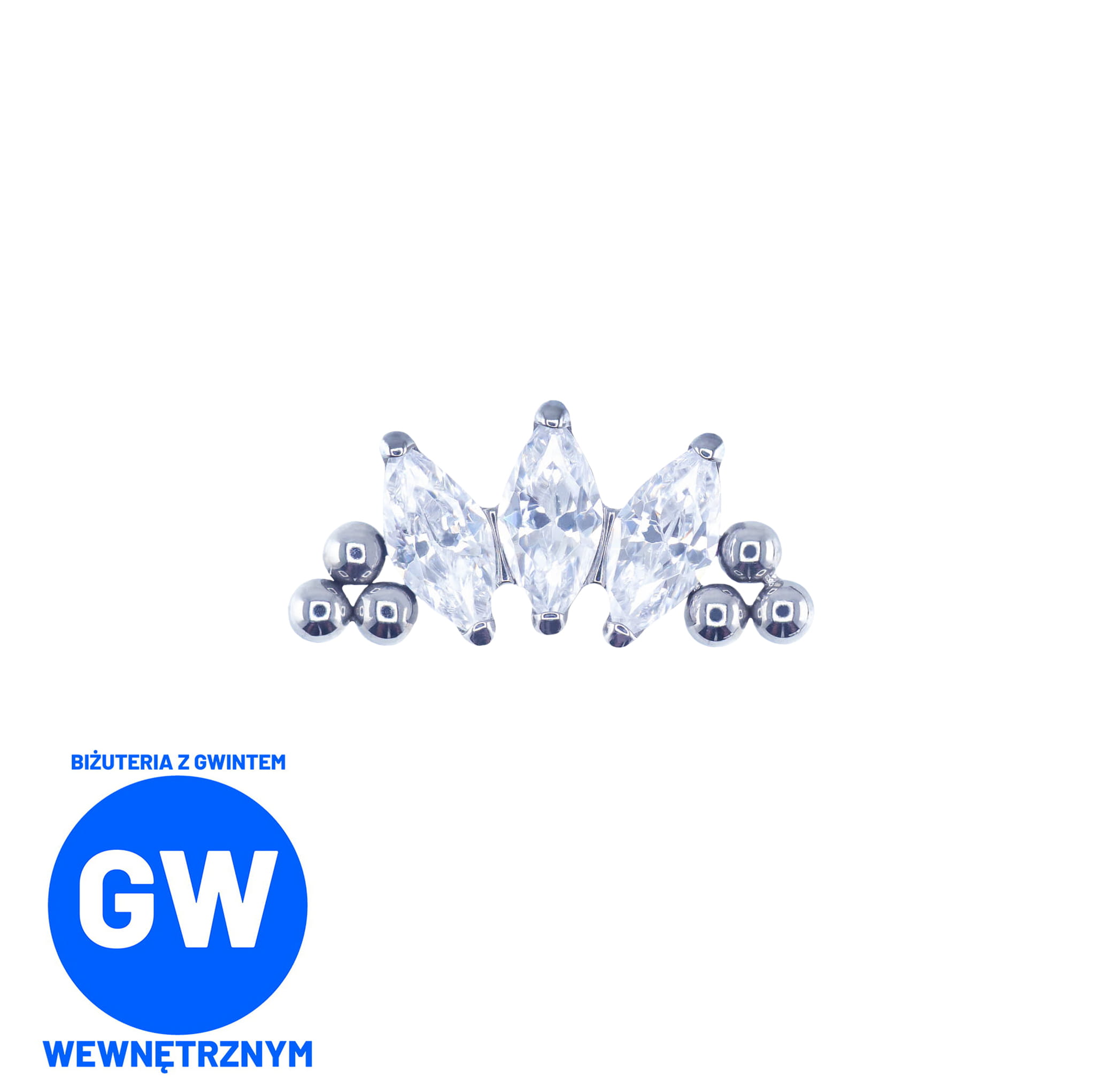 Połączenie trzech cyrkonii w kształcie markizy z kuleczkami tworzy trójkątną, bardzo estetyczną formę. Wygląda lekko, a jednocześnie efektownie.