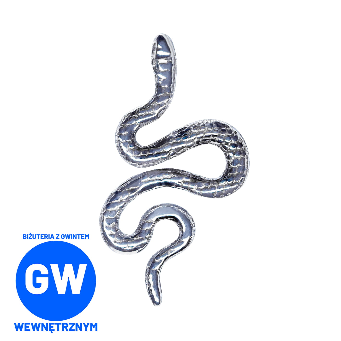 Ozdoba w kształcie węża. Świetnie pasuje do standardowych przekłuć płatka ucha, narobi sporo interesującego zamieszania w tych niestandardowych.
