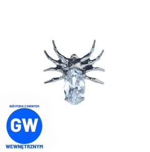 Duży pająk z kryształem - tytanowy ozdobny labret