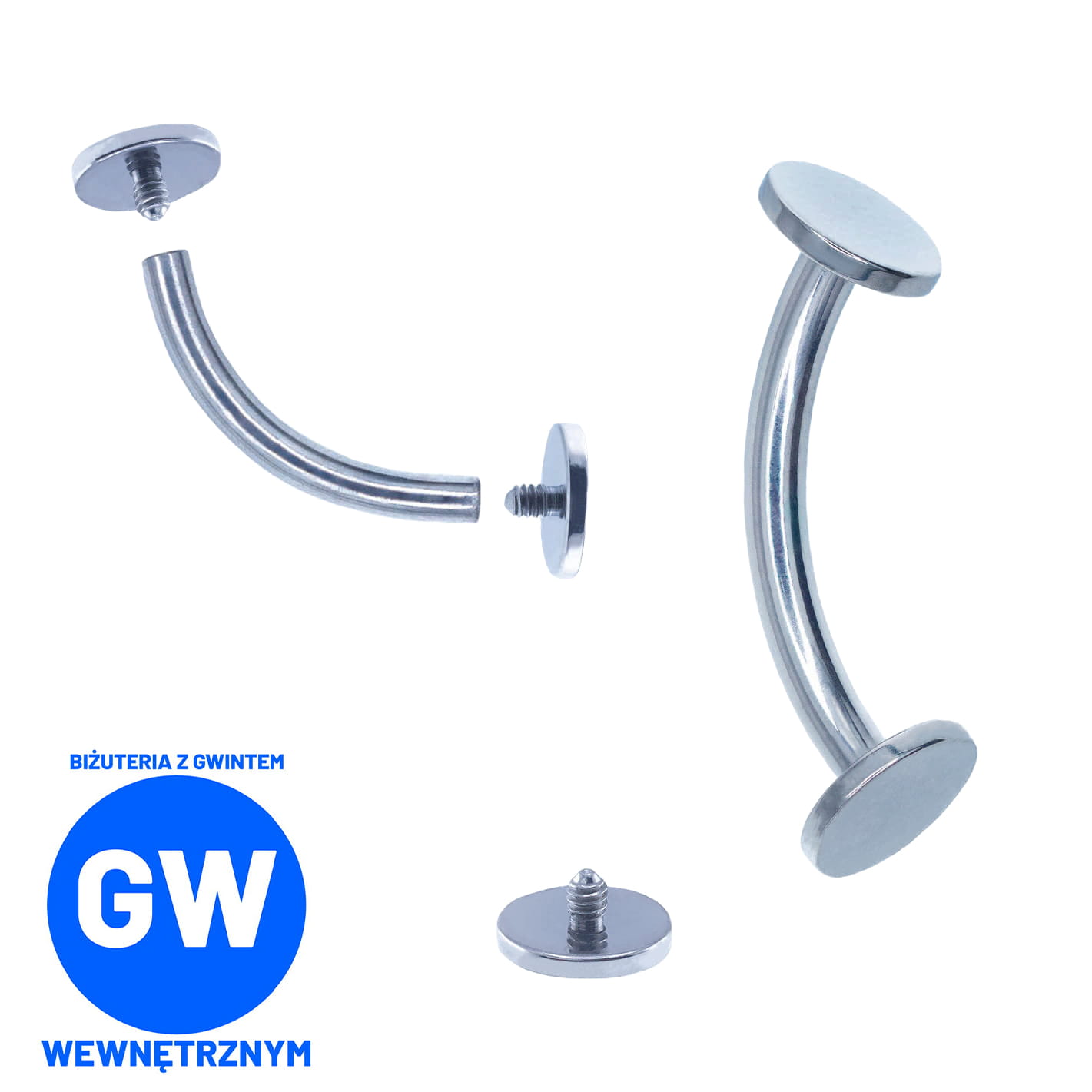 FLOATING NAVEL tytanowy banan z dyskami - pręt gwint wewnętrzny