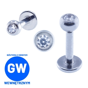 Klasyczny biały kryształ w kulce labret z gwintem wewnętrznym kryształowa kulka