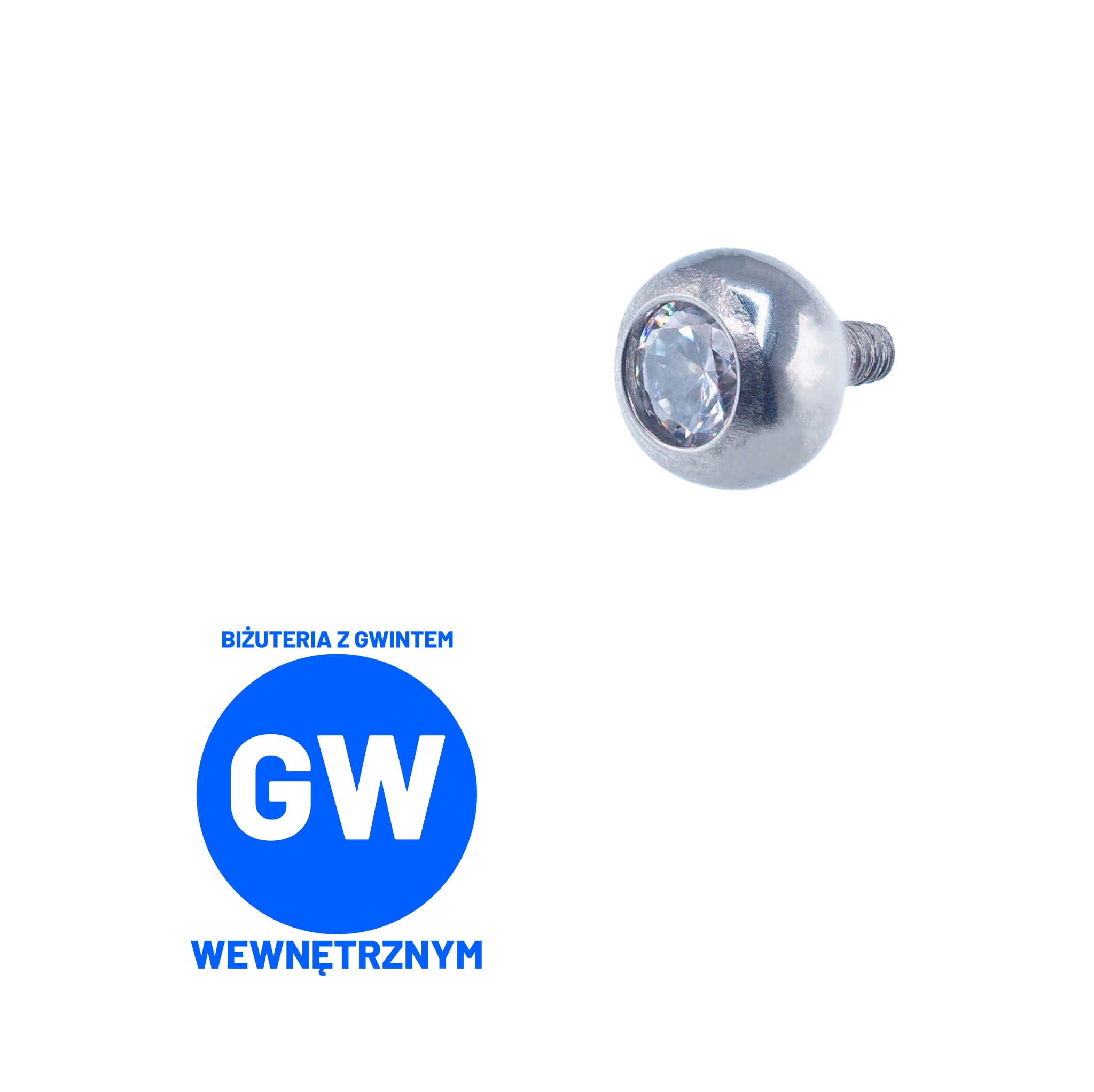 Klasyczny biały kryształ w kulce z gwintem wewnętrznym