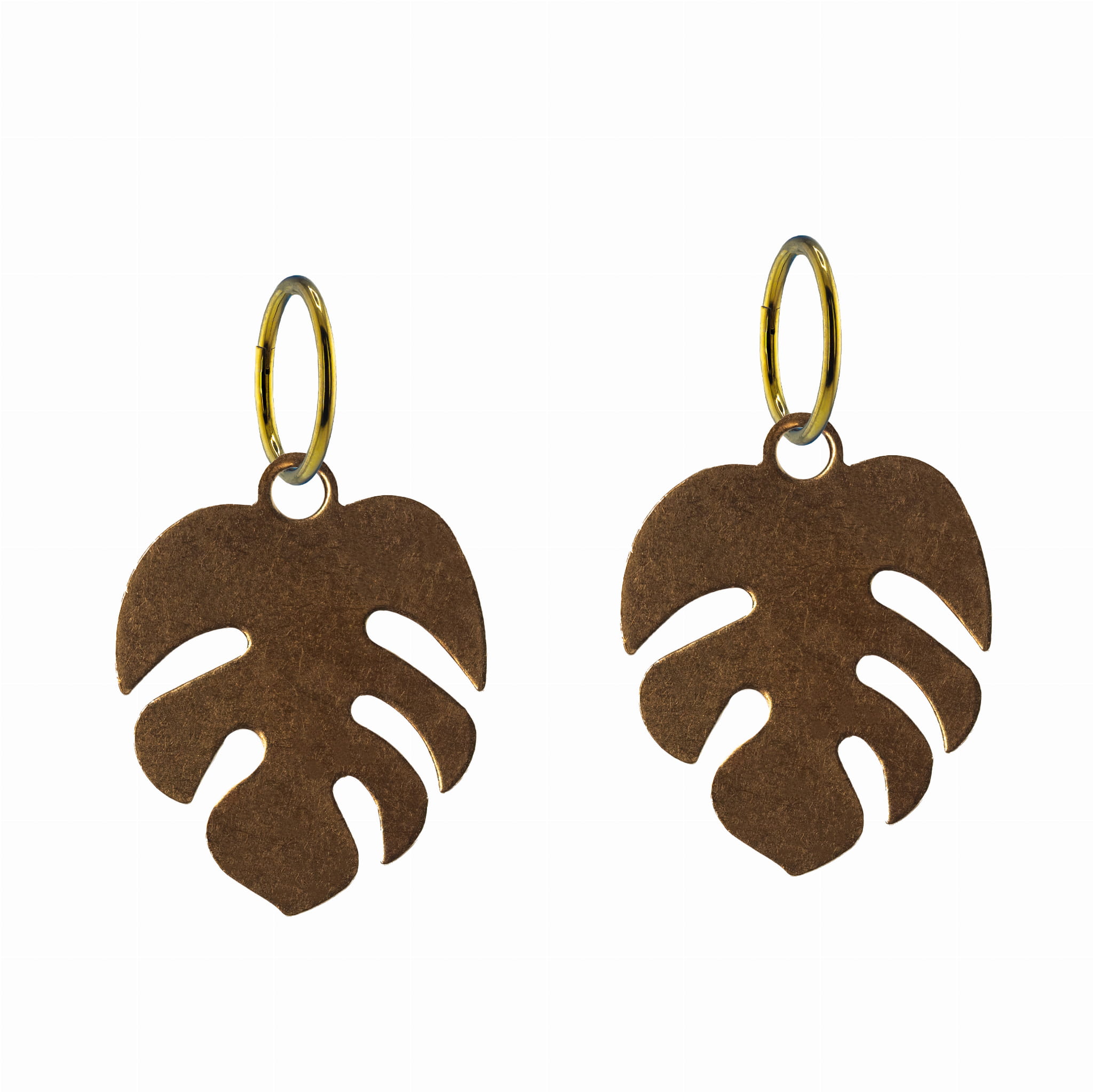 Kolczyki wiszące liście monstery gładkie z mosiądzu