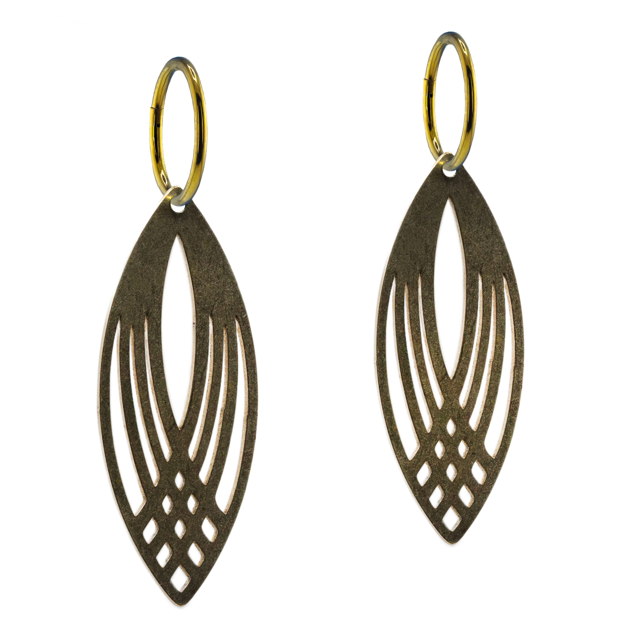 Kolczyki wiszące podłużna rozeta z mosiądzu