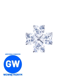 Urocza końcówka w formie czterolistnej koniczyny, w której każdy listek to serduszko z cyrkonii. Wykonana z tytanu ASTM F-136, łączy delikatny, kobiecy wygląd z wyjątkową trwałością.