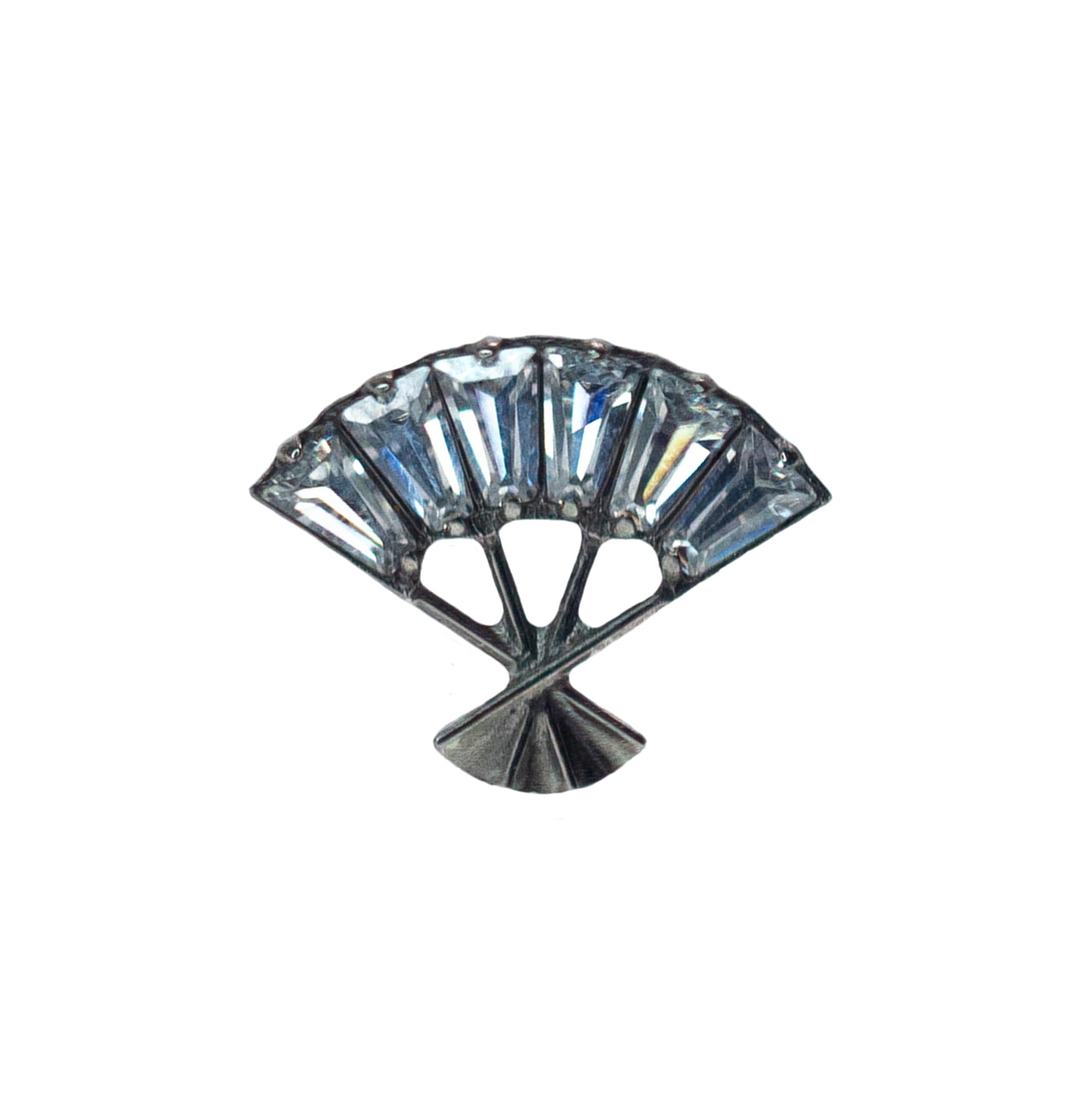 Elegancki wachlarz z drobnych kryształów pięknie układa się przy krawędzi ucha, dając efekt subtelnego rozświetlenia.