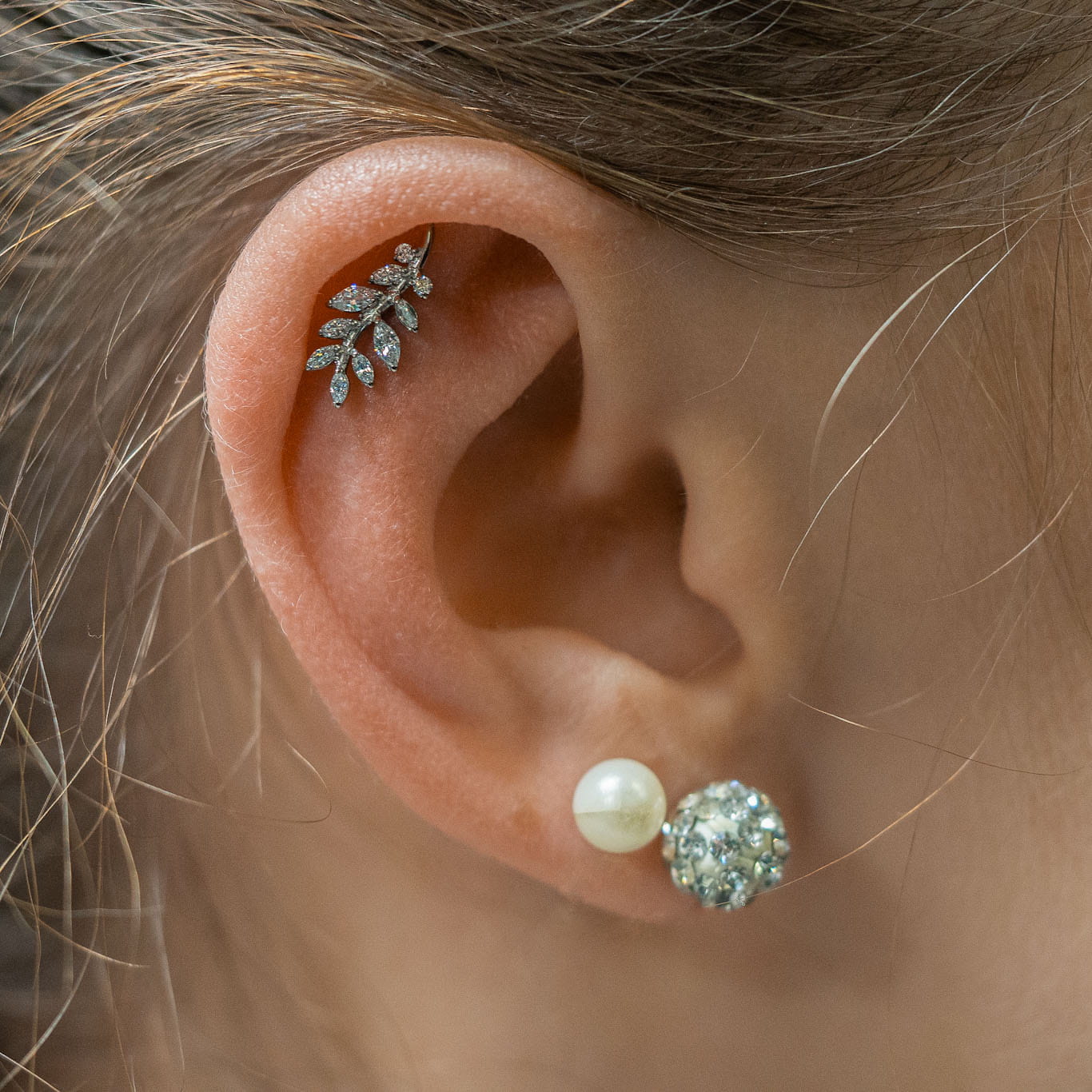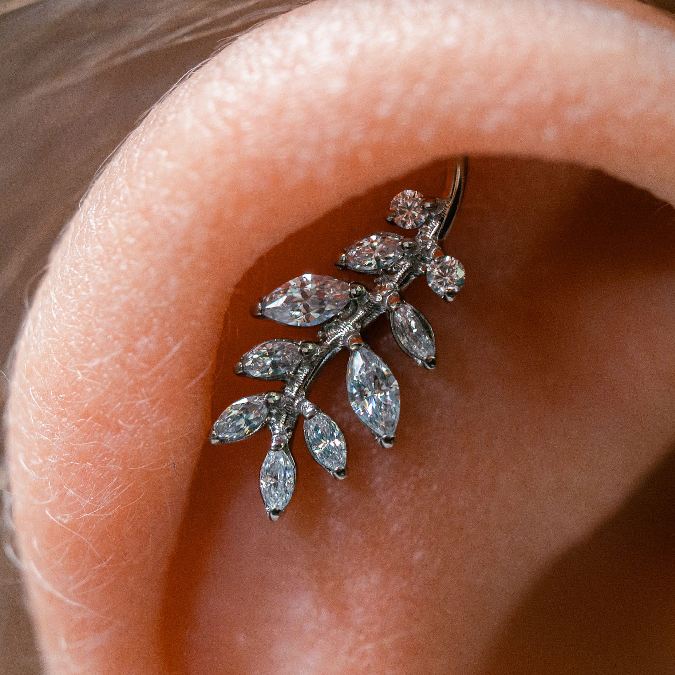 Kryształowy liść gałązka roślina - tytanowy ozdobny labret
