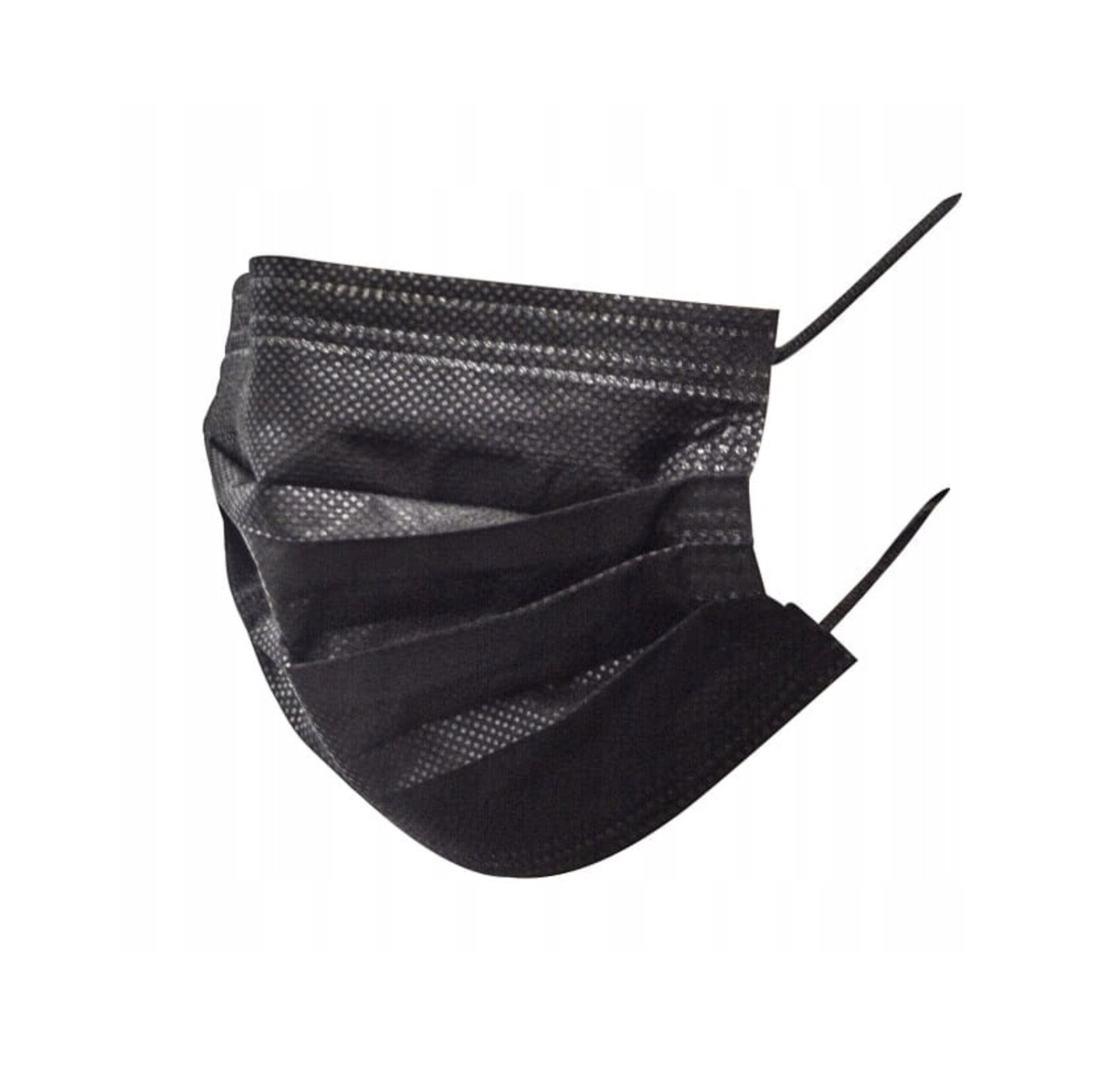 Trzywarstwowa maseczka medyczna w kolorze czarnym.