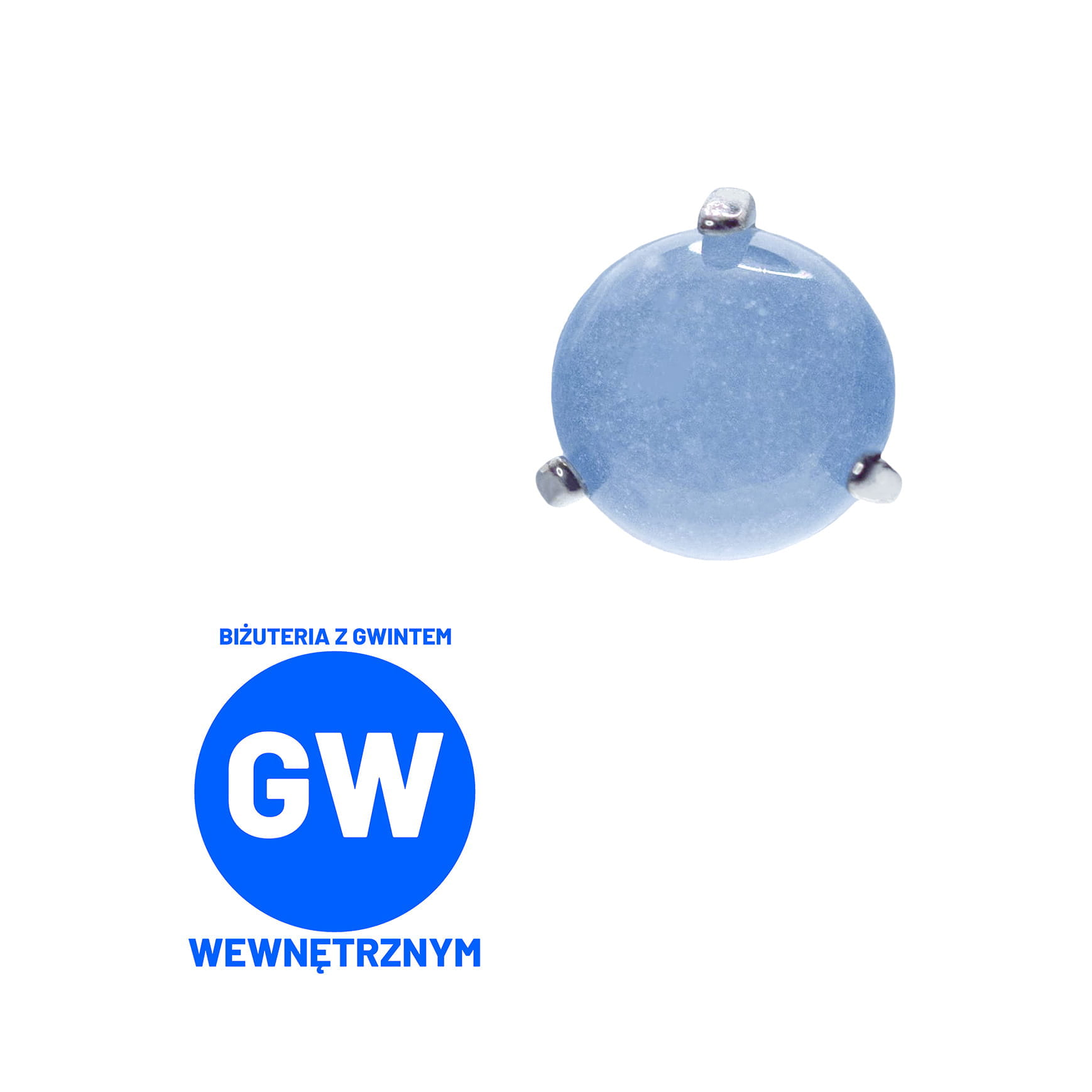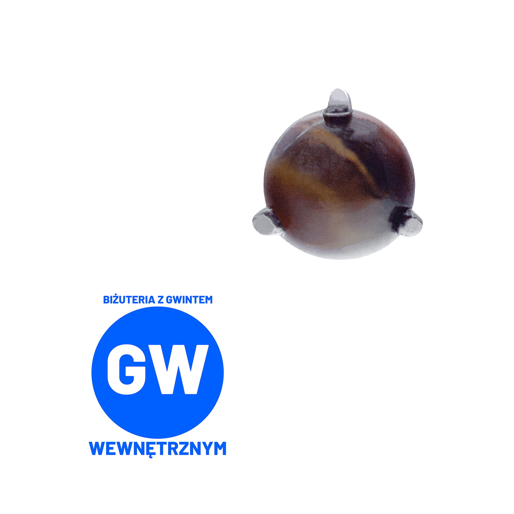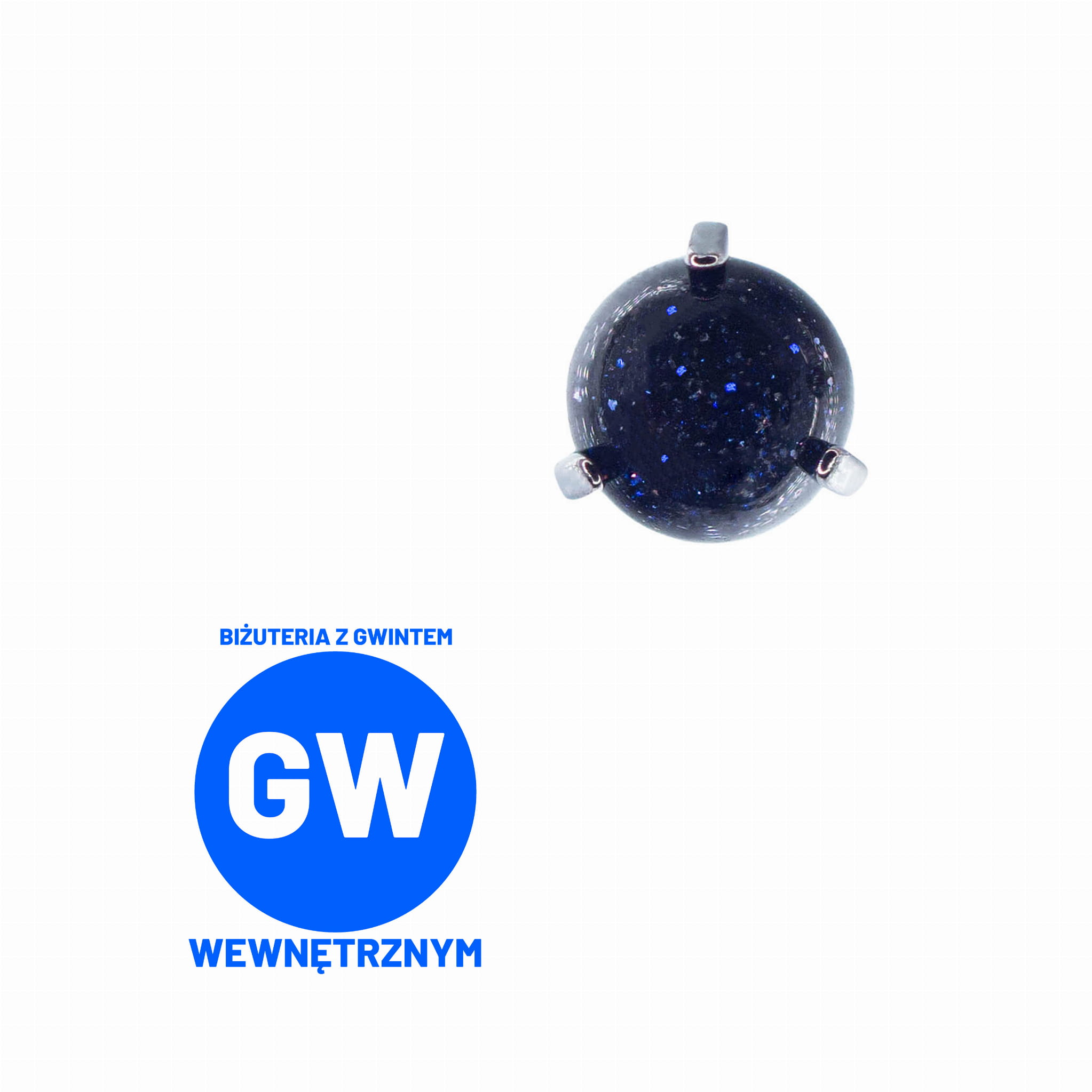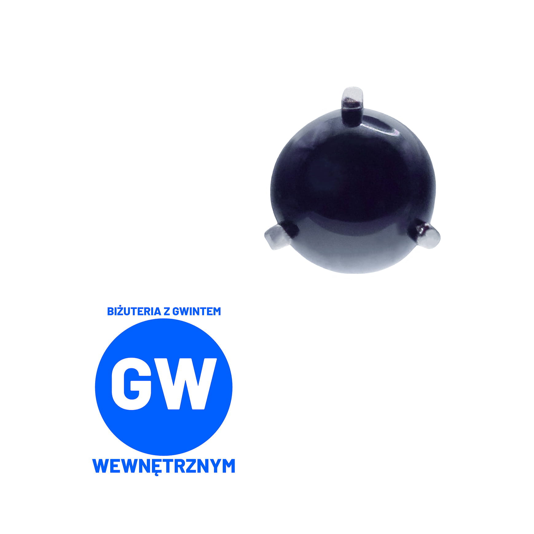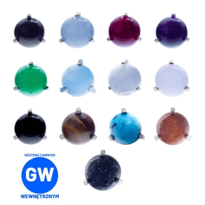 Widoczna biżuteria na zdjęciach to okrągłe syntetyczne kamienie, trzymane w mocarnych tytanowych klamrach. Dostępne z gwintami do prętów wewnętrznych wielkości 1,2 lub 1,6 mm.