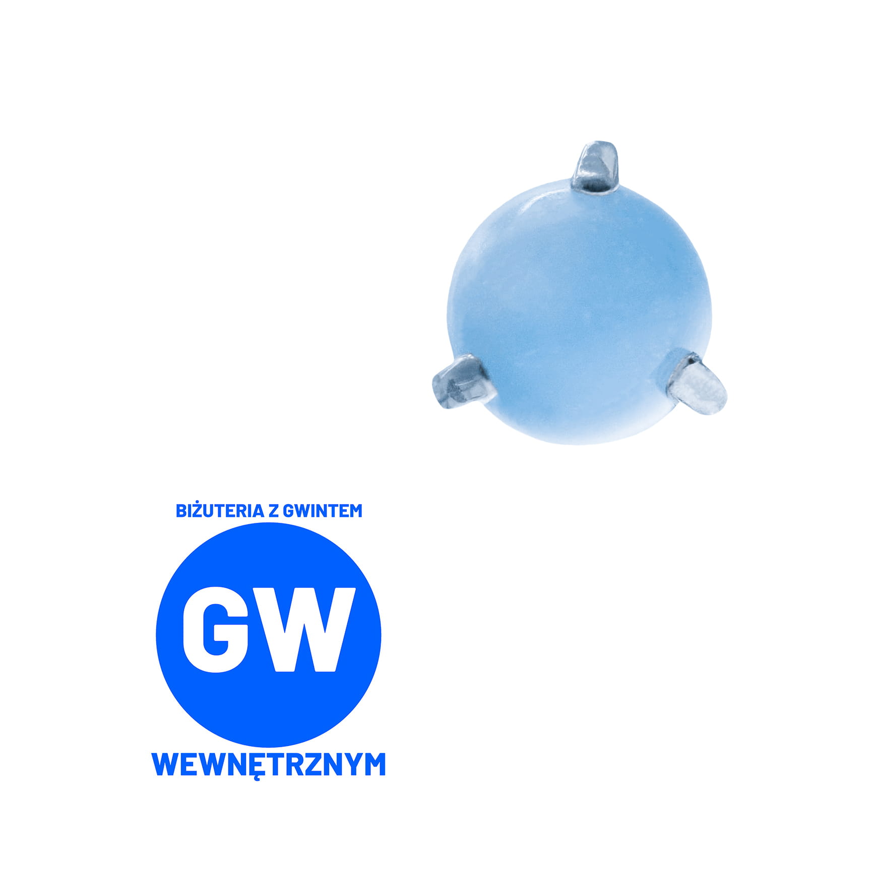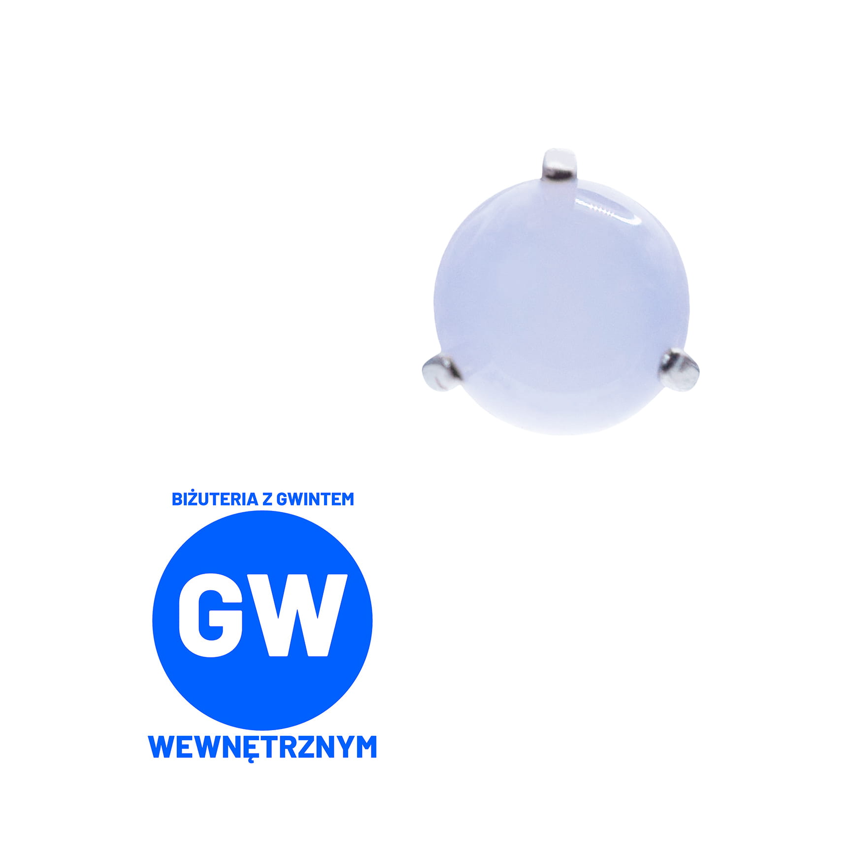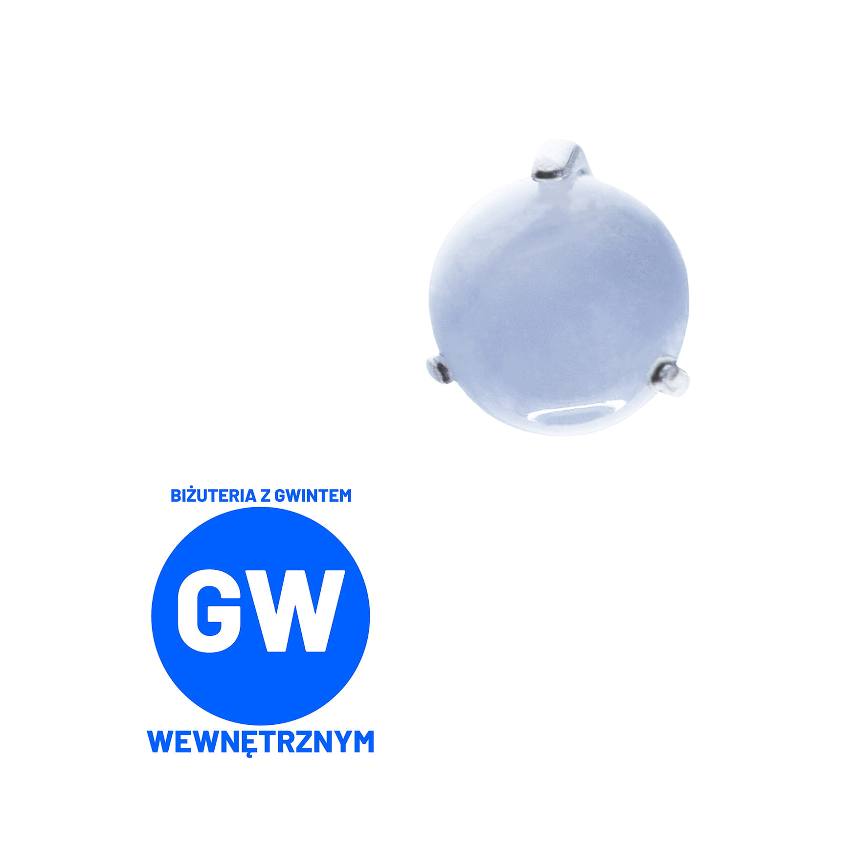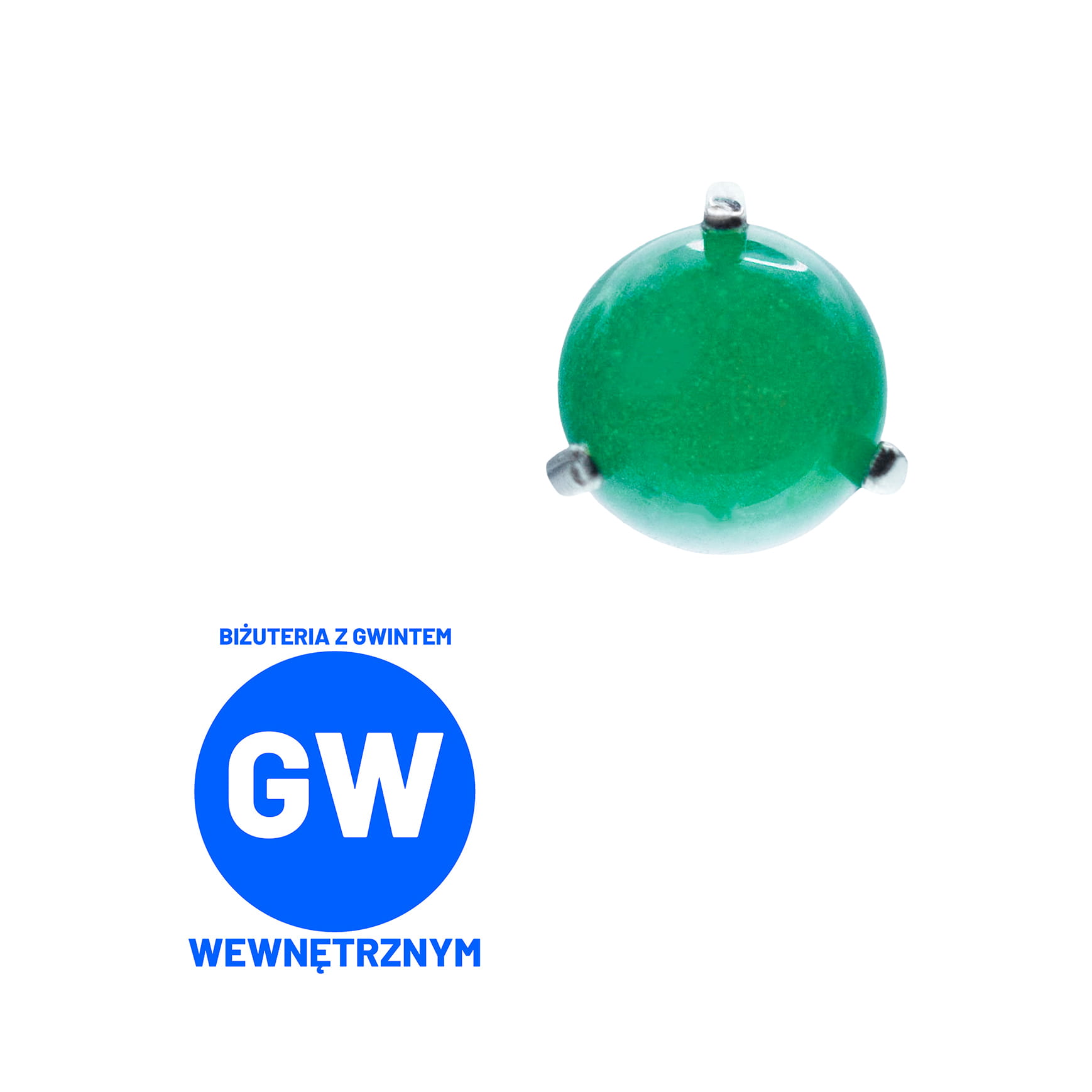 Widoczna biżuteria na zdjęciach to okrągłe syntetyczne kamienie, trzymane w mocarnych tytanowych klamrach. Dostępne z gwintami do prętów wewnętrznych wielkości 1,2 lub 1,6 mm.