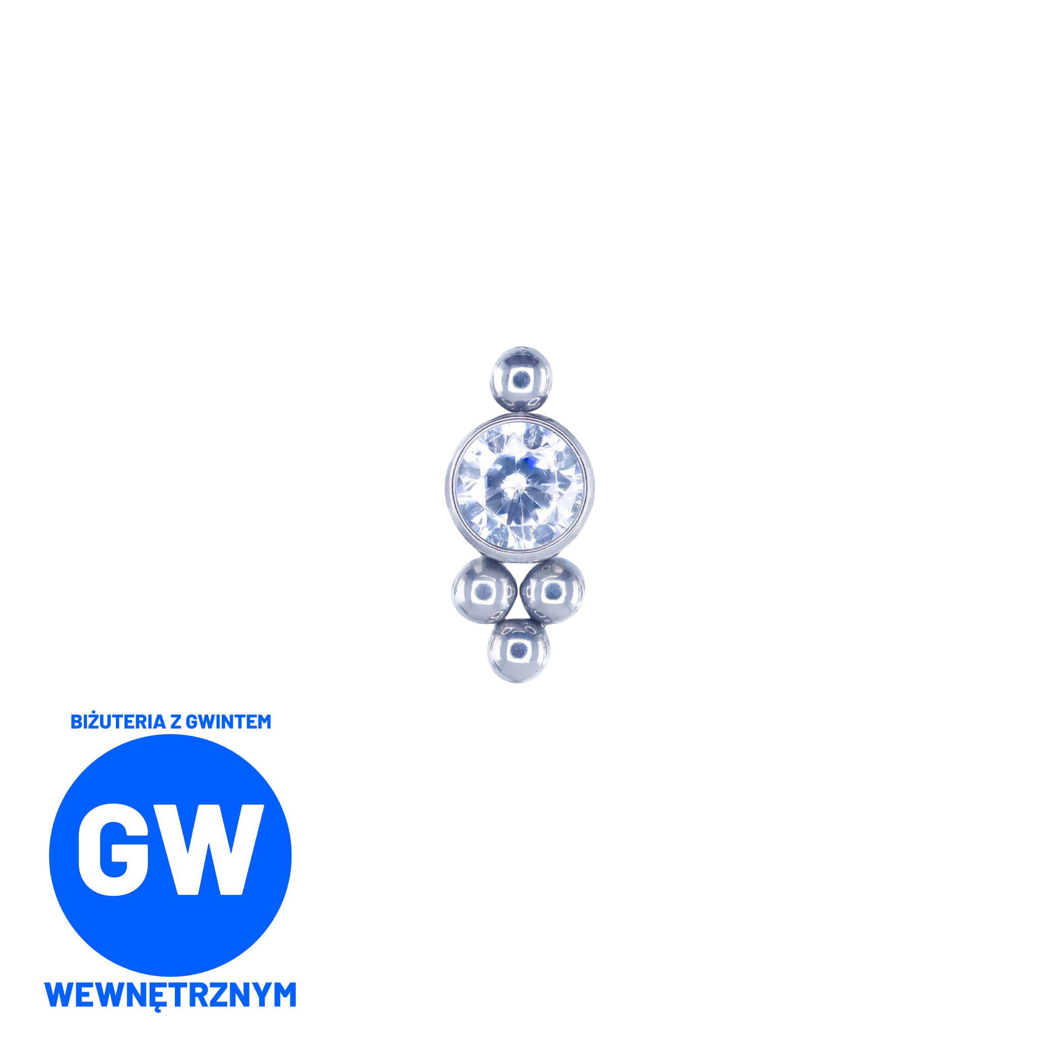 Okrągły kryształ z 4 kuleczkami - tytanowy ozdobny labret