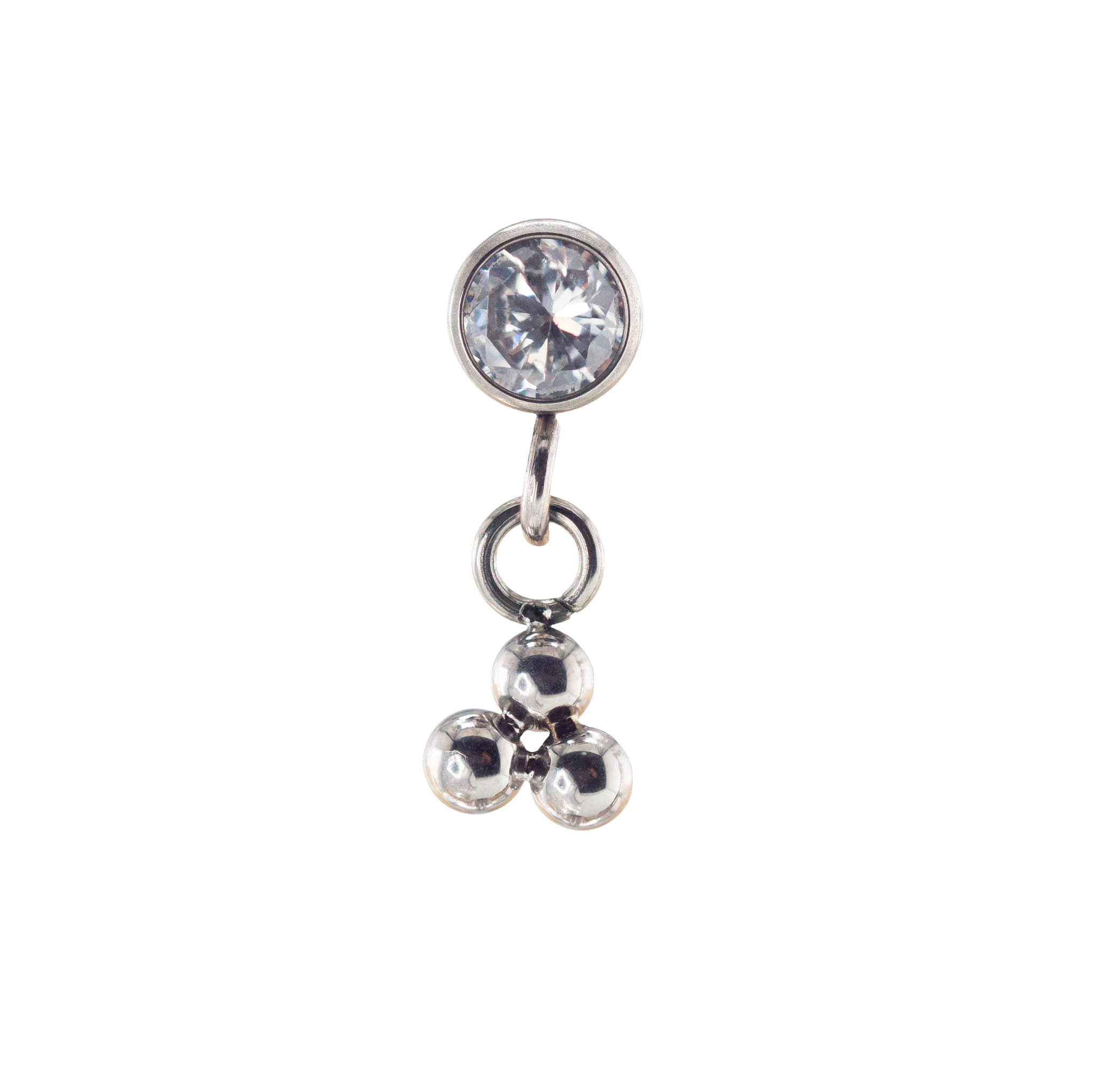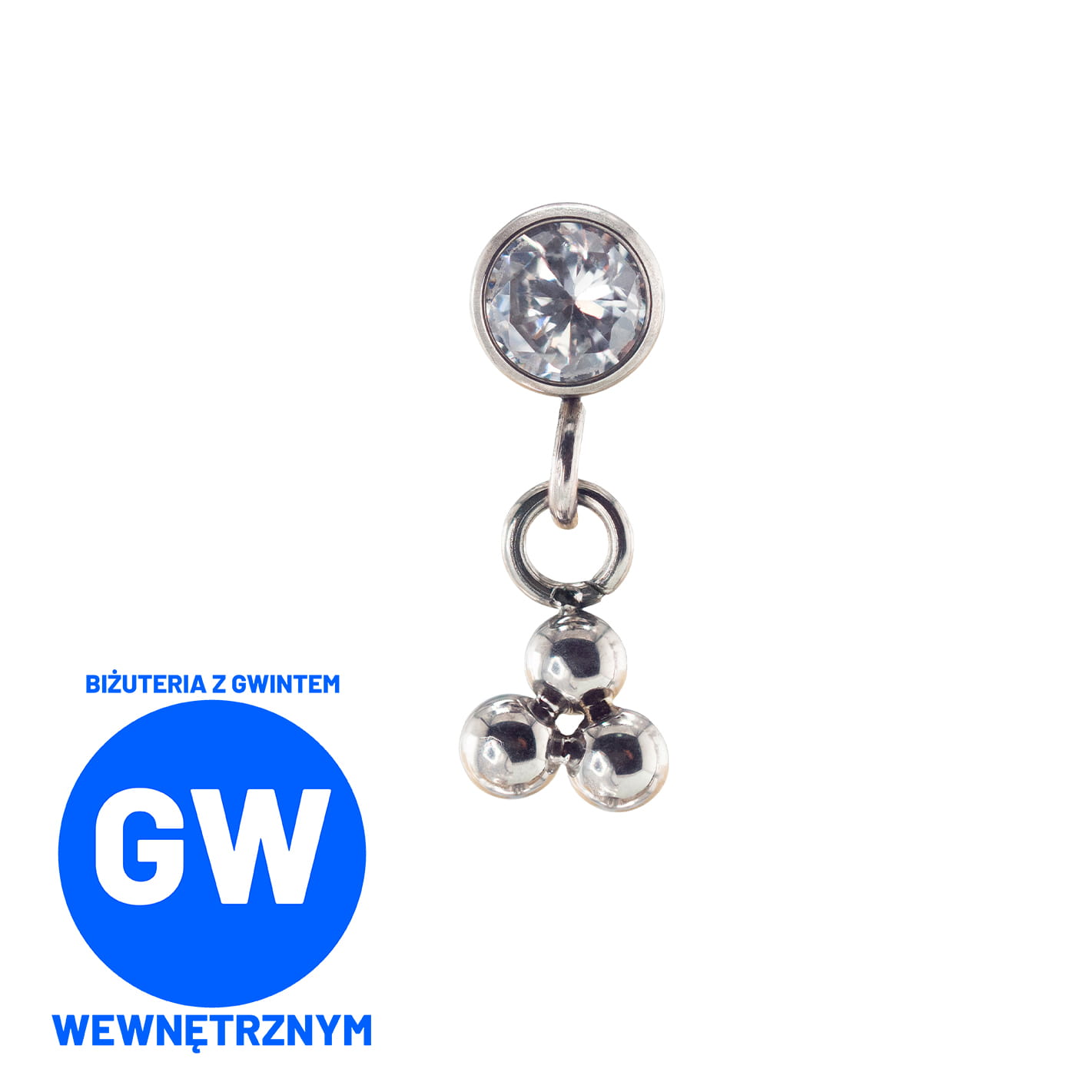 Okrągły kryształ z wiszącymi 3 kuleczkami - tytanowy ozdobny labret
