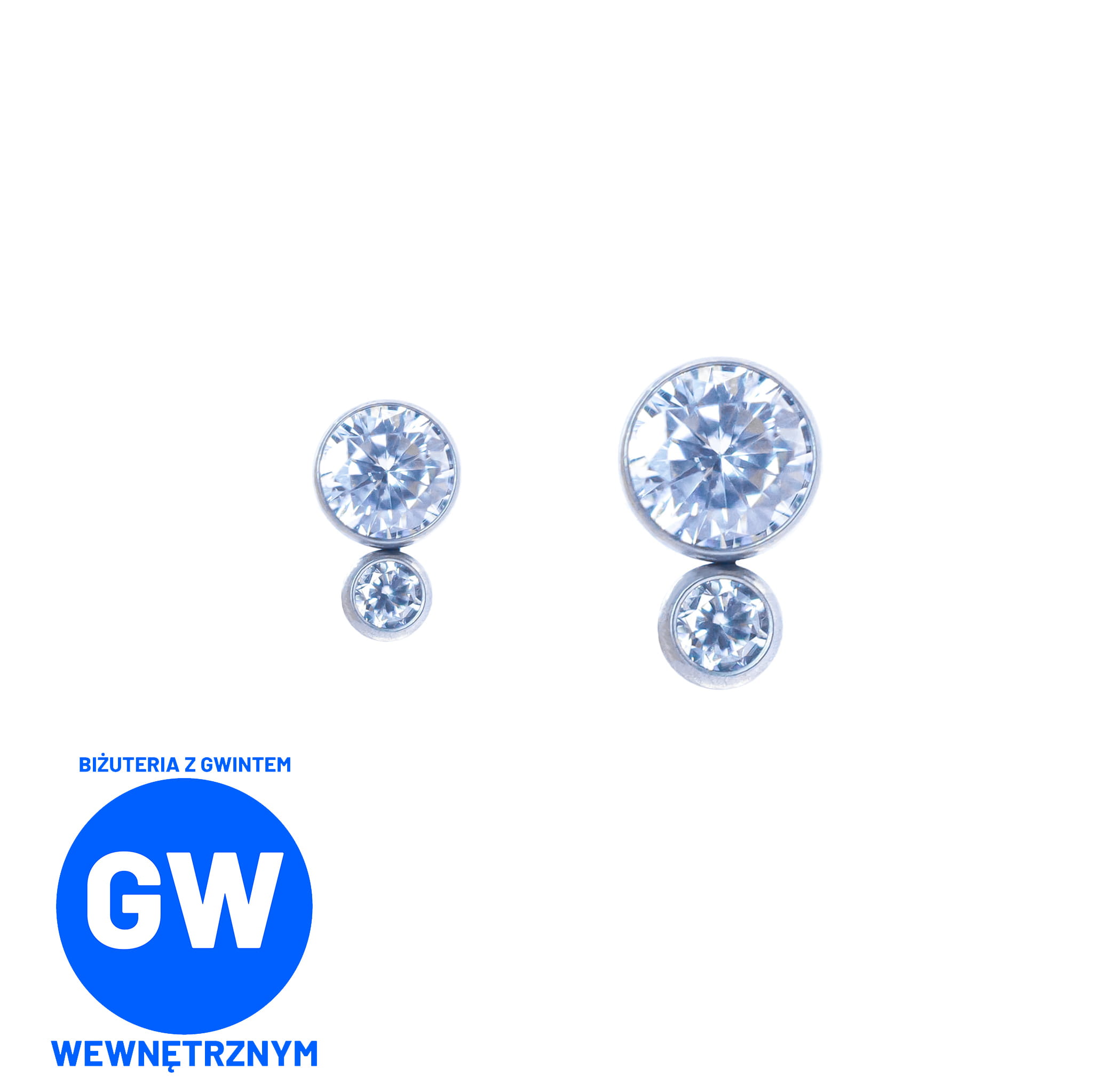 Klasyczny kryształ w tytanowej oprawie z dodatkowym małym kryształem- dwa warianty wielkości- 3 i 4 mm średnicy górnego kryształka. Dostępny w wielu rozmiarach i kolorach.