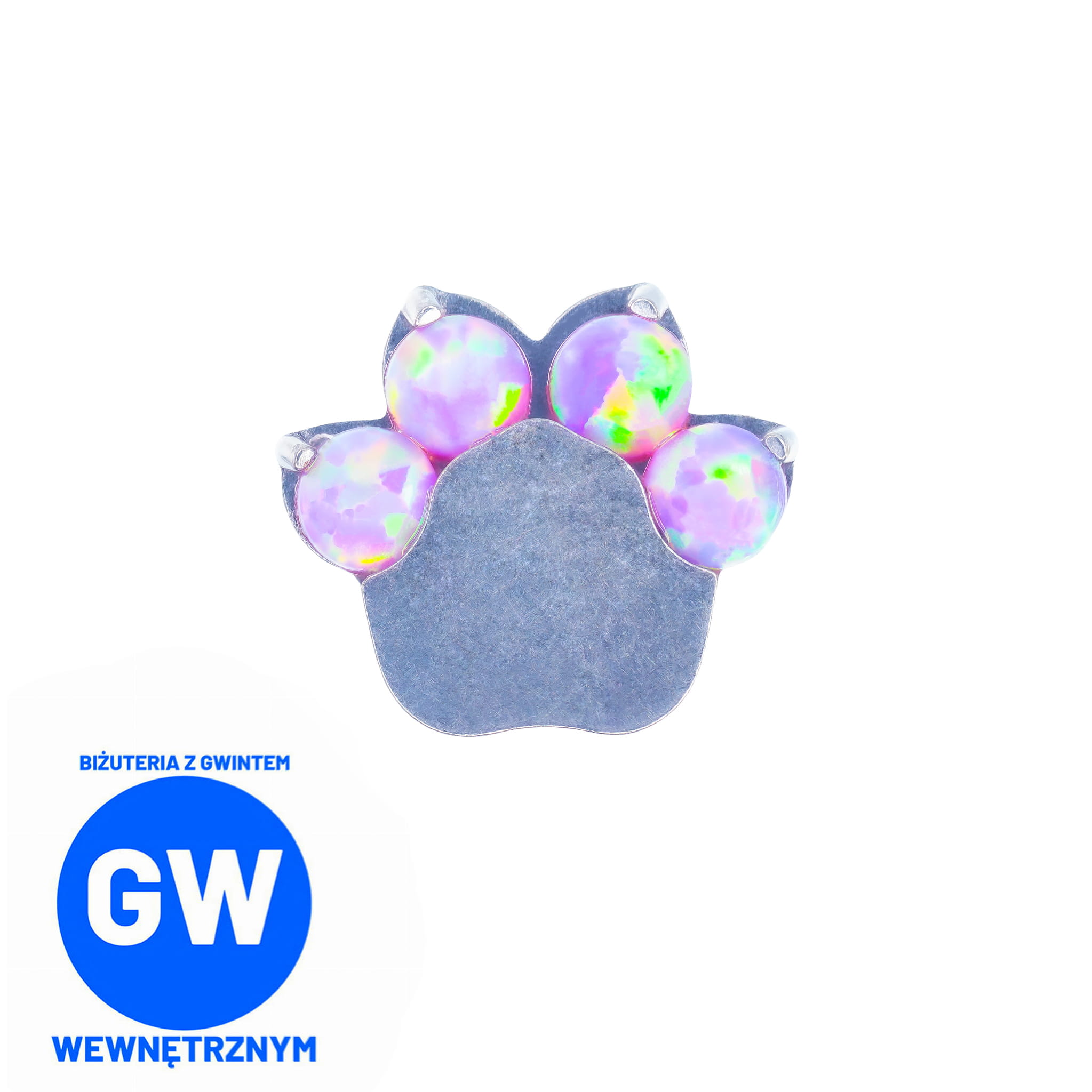 Psia łapka z różowymi opalami - tytanowy ozdobny labret