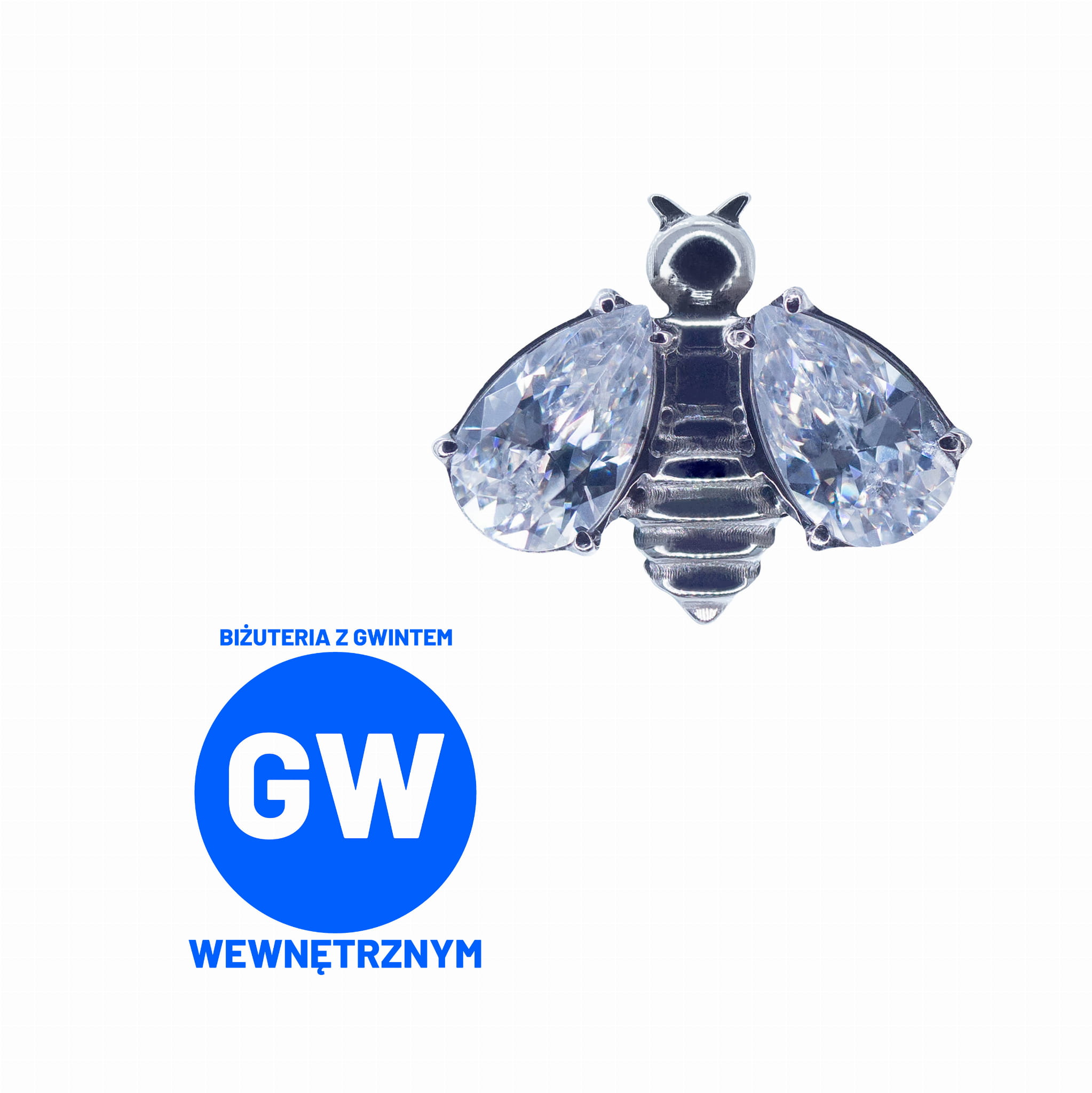 Pszczoła z kryształowymi skrzydłami - tytanowy ozdobny labret