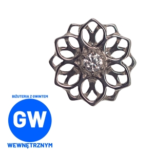Rozeta mandala z kryształem - tytanowy ozdobny labret