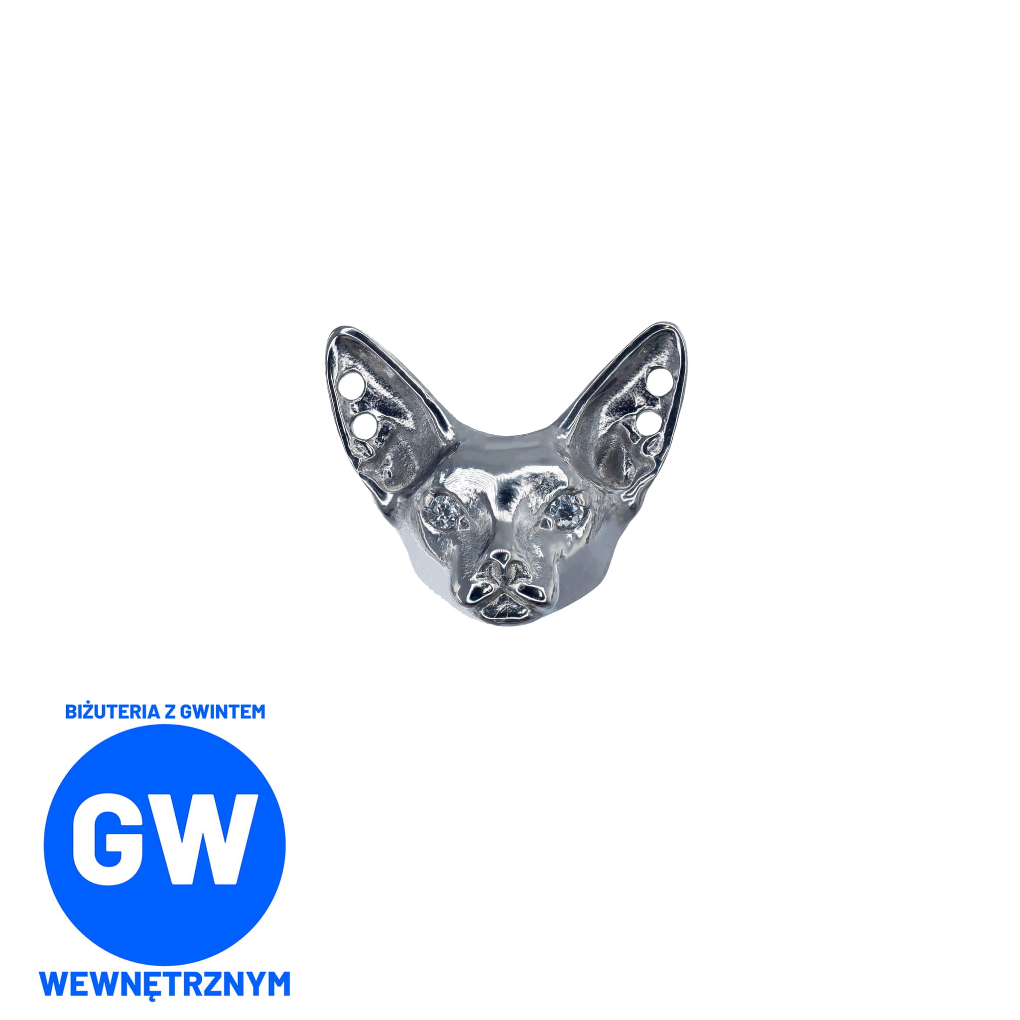 Sfinks kot z kryształowymi oczami - tytanowy ozdobny labret