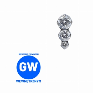 Teardrop 3 kryształki w pionie - tytanowy ozdobny labret
