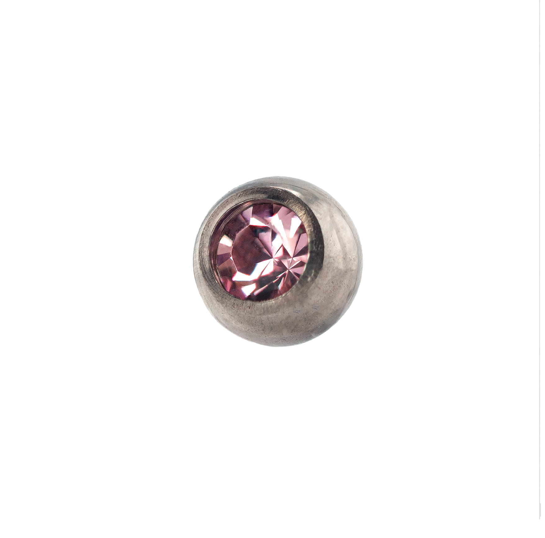 Tytanowa nakrętka kulka z różowym kryształkiem do biżuterii z gwintem zewnętrznym.