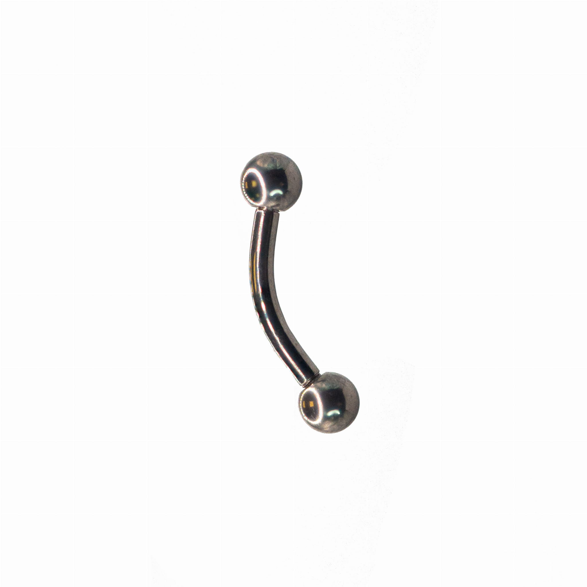 Tytanowy banan bezgwintowy z kuleczkami wykonany z polerowanego tytanu.